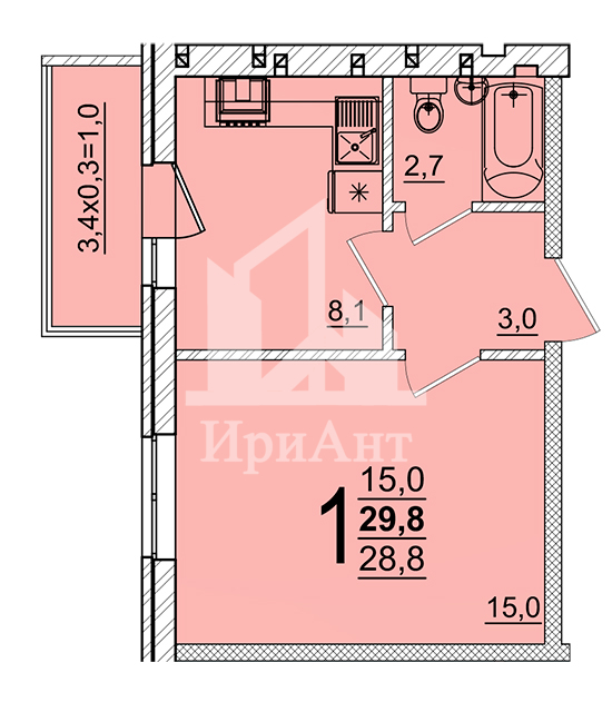 | Площадь, кв.м. | 29.8 |