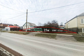 Продаётся земельный участок правильной прямоугольной формы фасад 25 м глубина 48 к участку подведены все коммуникации газ, свет, вода на участке находится старый каменный дом под снос. К участку идёт ведёт асфальтированная дорога.