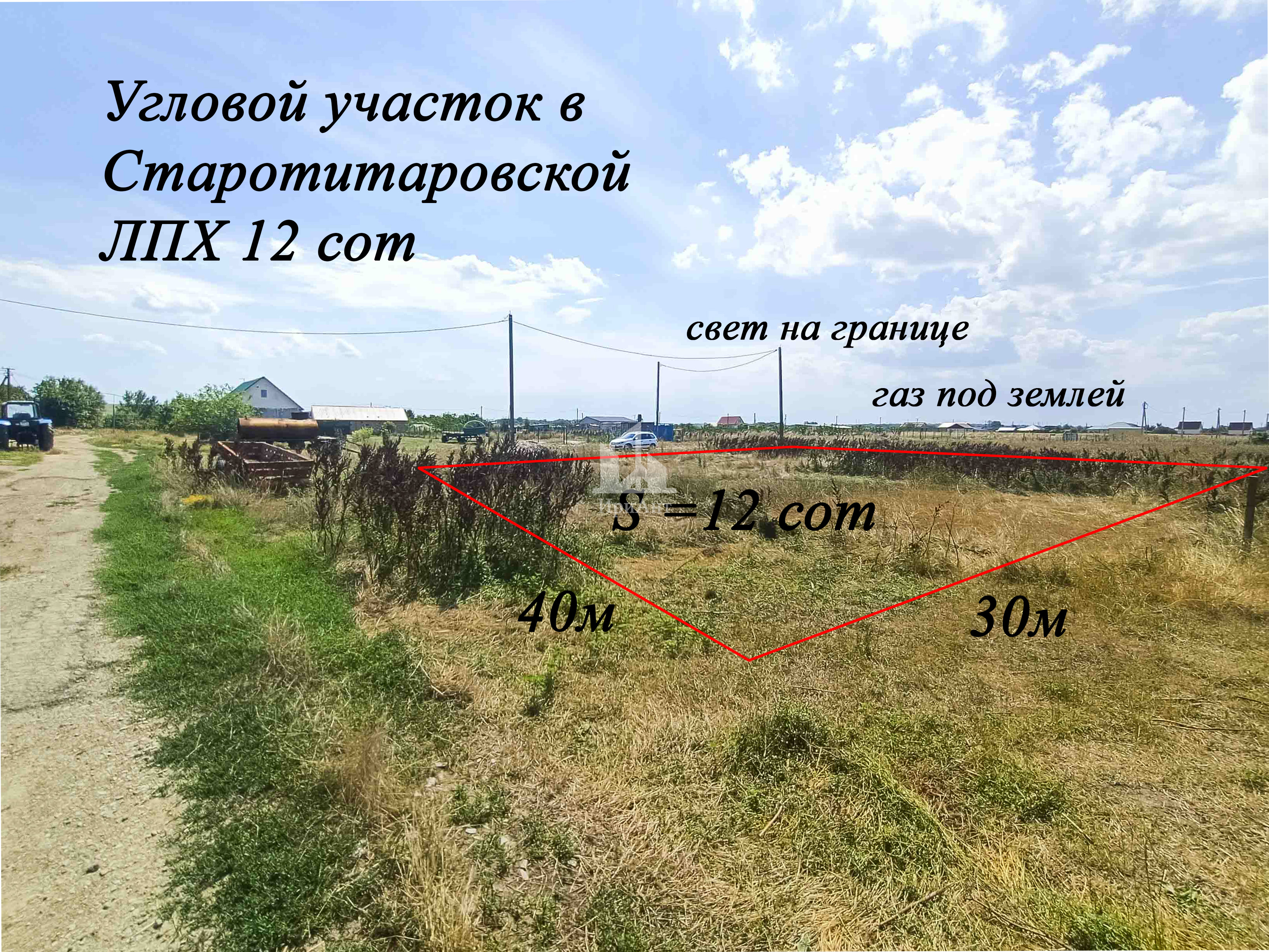 Продается земельный участок 12 соток, угловой 30 на 40 м с одной стороны асфальтированная дорога на участке есть электричество, газ на границе.